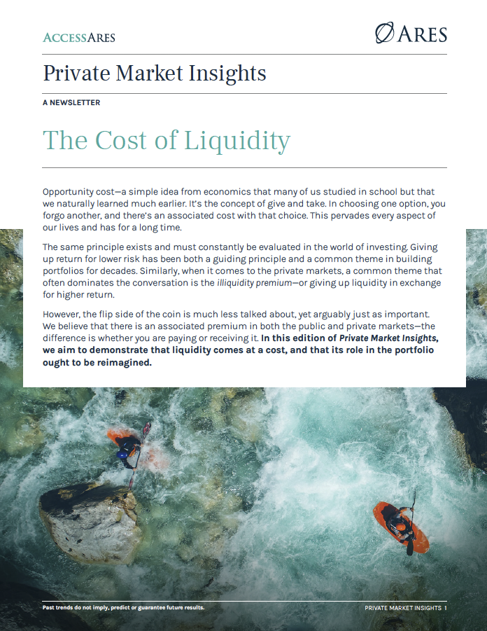 ARES NEWSLETTER “The Cost of Liquidity“Opportunity cost—a simple idea from economics that many of us studied in school but that we naturally learned much earlier.